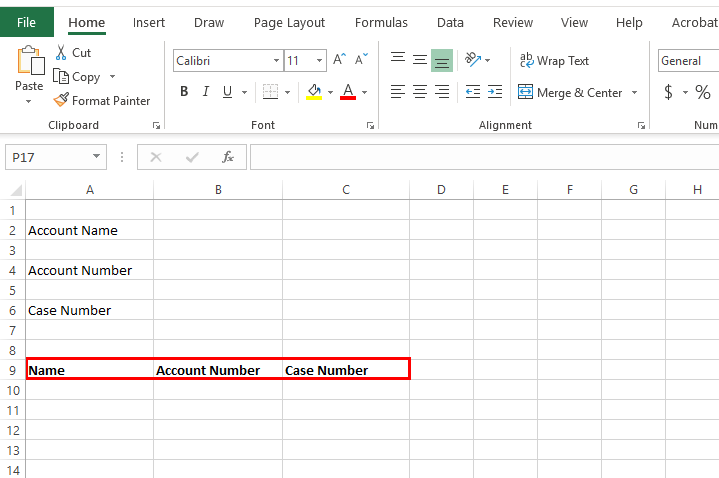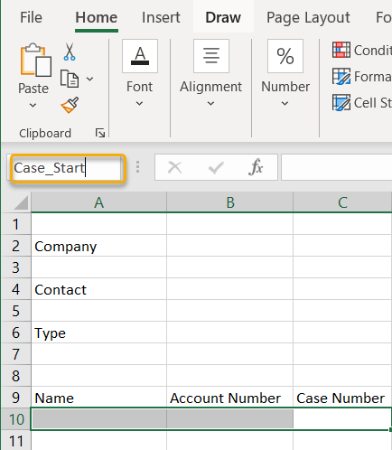 Optional: Add headers to your Microsoft Excel document. The headers will assign where the child field tags will go in the column. When we run the DocGen Package, you should receive multiple rows of data with the Case information.