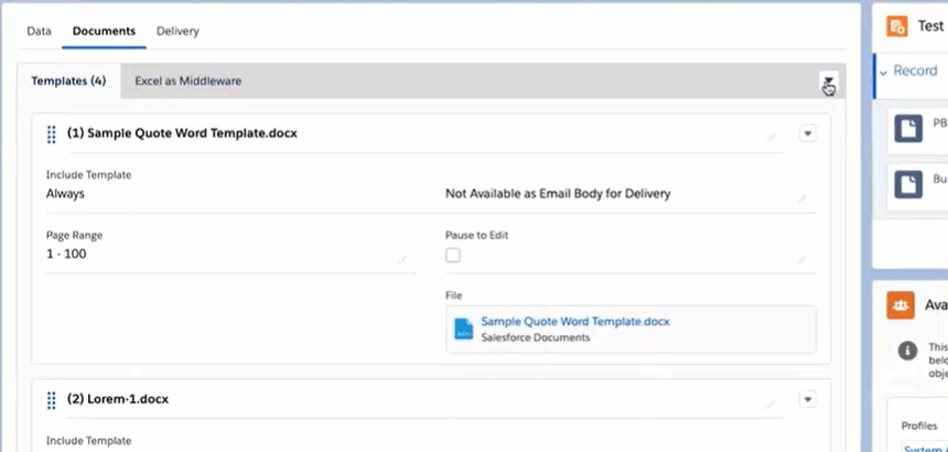 You can merge Microsoft Word, Microsoft Excel, and Microsoft PowerPoint template files into one single output with a DocGen Package. By merging multiple template files into one allows you to be able to make several documents optional, but still include them in a single document.